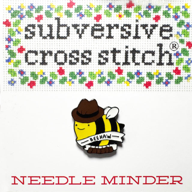If you're not familiar, needle minders have two magnets that go on either side of your fabric while you're stitching. When you take a break, it keeps your needle handy with its magical magnetic powers!