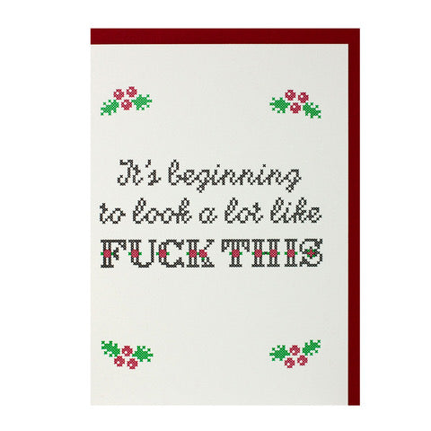 This collaboration started when I saw a letterpress poster by Mary Bruno (Bruno Press) inspired by one of my cross stitch designs—printed partly with LEGOS, no less. I reached out, we talked, and instantly realized we share the same creative spirit. The result is this large cross stitch piece I designed (beautifully stitched by Mr. Stevers) and a set of true letterpress holiday cards Mary printed using my artwork. A smart, joyful blend of both our mediums—and a new friendship to top it off!